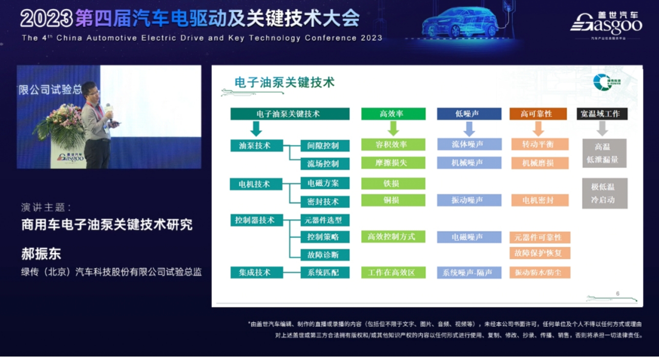 2023汽車電驅(qū)動及關鍵技術大會 綠傳科技分享電子油泵關鍵技術方案